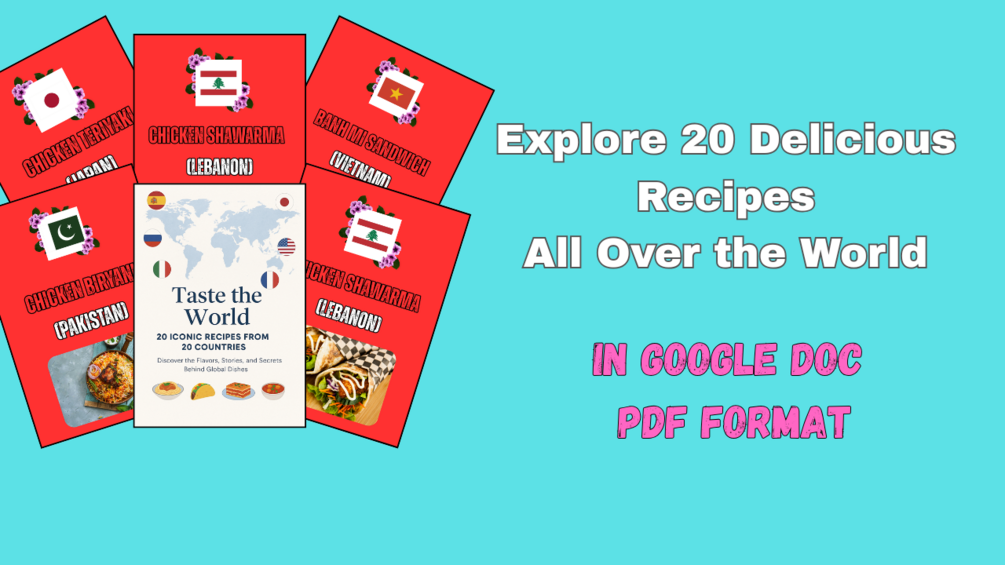 A quick taste of the world — in just 20 pages. This Google Docs-style PDF gives you 20 easy recipes from 20 different countries. Simple ingredients, fast steps, and global flavor. Perfect for those who loves trying new dishes.